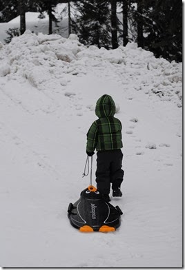 I had bought them a little penguin sled the day before at Target but it seemed like everywhere was a “ no sledding” zone. We finally just found a small area by a parking lot (with no cars) to play around for a few minutes. We tried telling Rowan we’d do it next time but the tears started coming and we didn’t have the heart to tell him no.